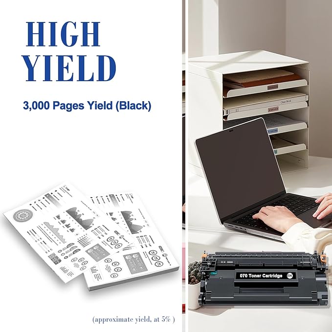 - Page Yield: 3,000 pages per 070 black toner cartridge at 5% coverage