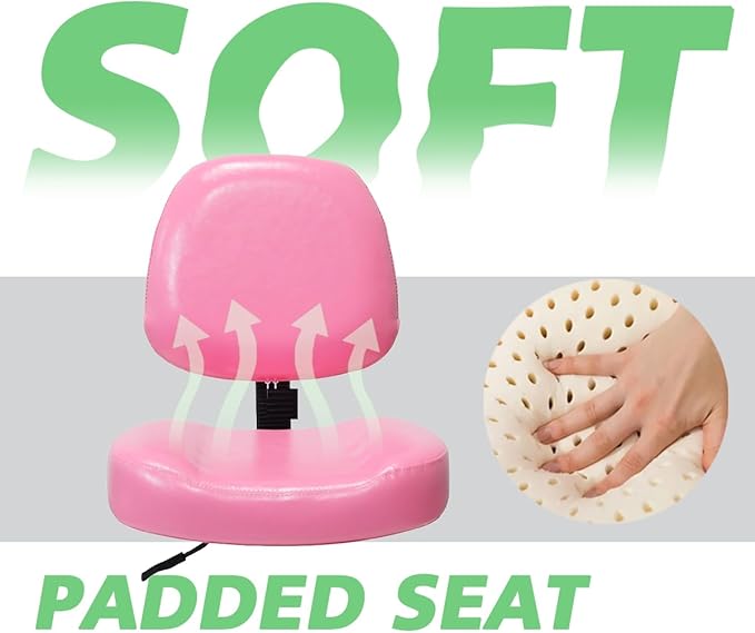 Vanity Rolling Chair Esthetician Shop Stool with Wheels,Ergonomic Lash Armless Office Chair, Desk Chair for Makeup Bedroom Classroom (Pink)