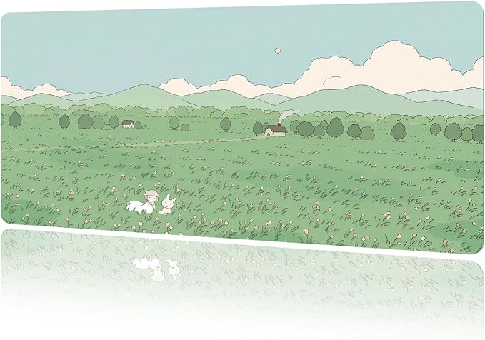 MAYCARI Cute Desk Mat Kawaii Mousepad, Anime Aesthetics Desk Pad XXL Cute Green Nature Mouse Pad Computer Keyboard Mat, Office Desk Pad Protector 31.5"X15.7"