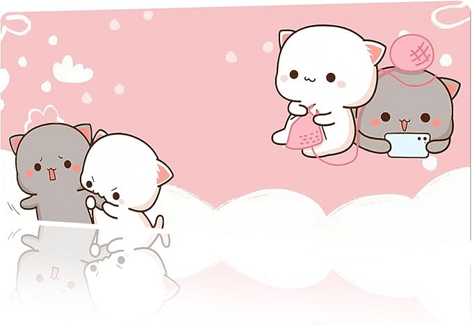 MAYCARI Cute Desk Mat Kawaii Mousepad, Anime Aesthetics Desk Pad XXL Cute Pink Cats Mouse Pad Computer Keyboard Mat, Office Desk Pad Protector 31.5"X15.7"