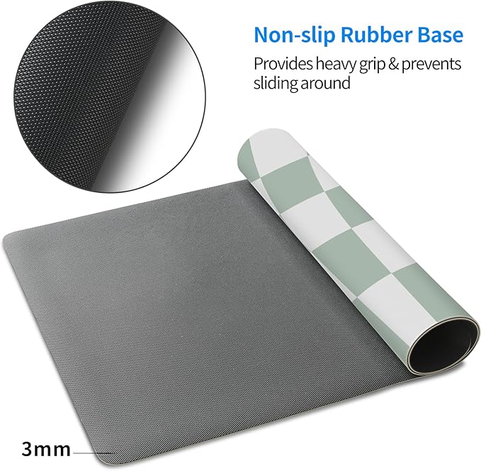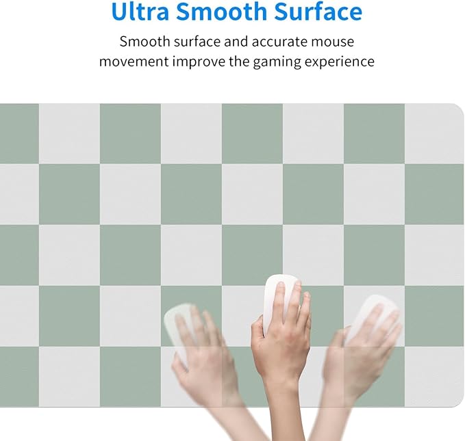 MAYCARI Cute Desk Mat Kawaii Mousepad, Anime Aesthetics Desk Pad XXL Cute Checkered White and Green Mouse Pad Computer Keyboard Mat, Office Desk Pad Protector 31.5"X15.7"