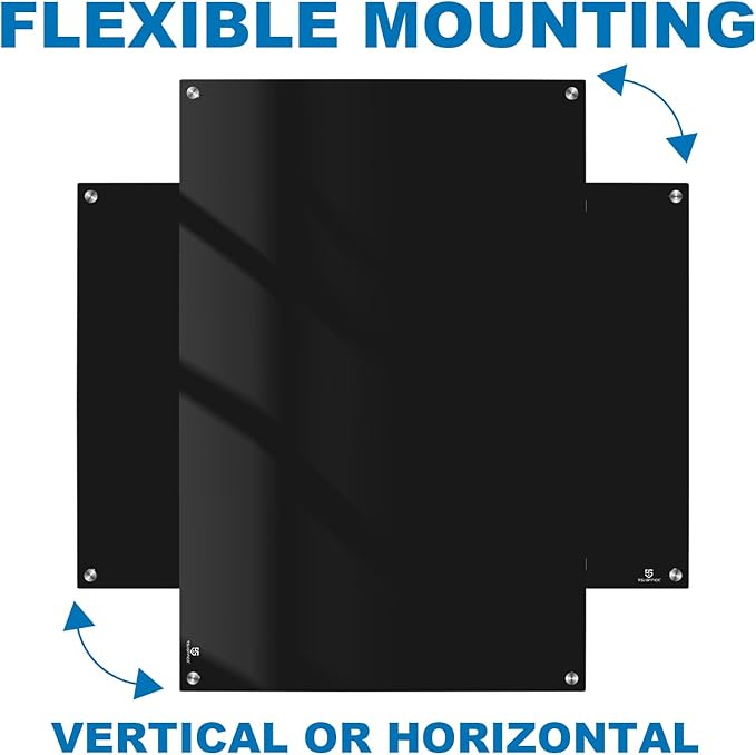TSJ OFFICE Glass Dry-Erase Board - 36 x 24 Inches Wall Mounted Black Glass Magnetic Whiteboard, Frameless Large White Board for Office, Home & School