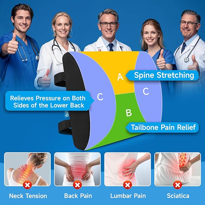 - ERGONOMIC DESIGN: Are you experiencing lower back pain because you spend most of your day sitting in an office chair, gaming chair, car or truck?The QUTOOL lumbar pillow provides excellent support for your back and relieves pain in the middle and lower back and along the sciatic nerve. As an office chair cushion and automobile lumbar support, it helps to maintain the gentle curve of the lower spine and helps you maintain proper sitting posture.