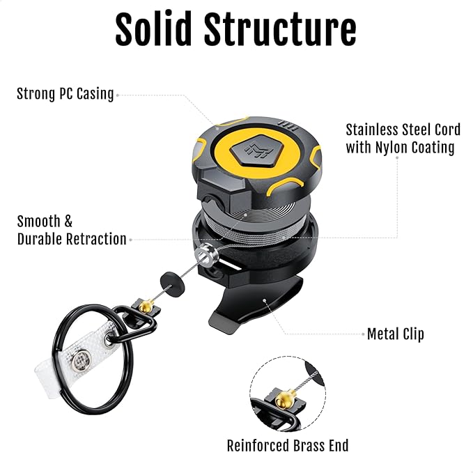 - 【25% MORE RETRACTION】The badge reel can hold up to 10 oz, which can carry 25% more keys and gadgets compared to the previous model, so you can take all your essentials without tradeoffs.