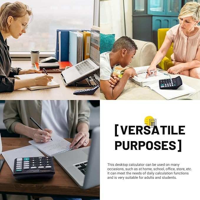- [VERSATILE PURPOSES]This desktop calculator can be used on many occasions, such as at home, school, office, store, etc. It can meet the needs of daily calculation functions and is very suitable for adults and students.