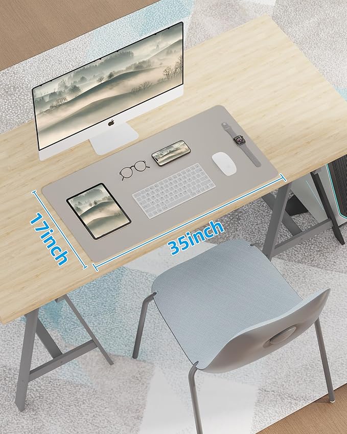 - MULTIFUNCTIONAL DESK PAD:35 x 17 Inch Size is large enough to accommodate your laptop, mouse and keyboard. Its comfortable and smooth surface can be work as a mouse pad,desk mat,desk blotters and writing pad.