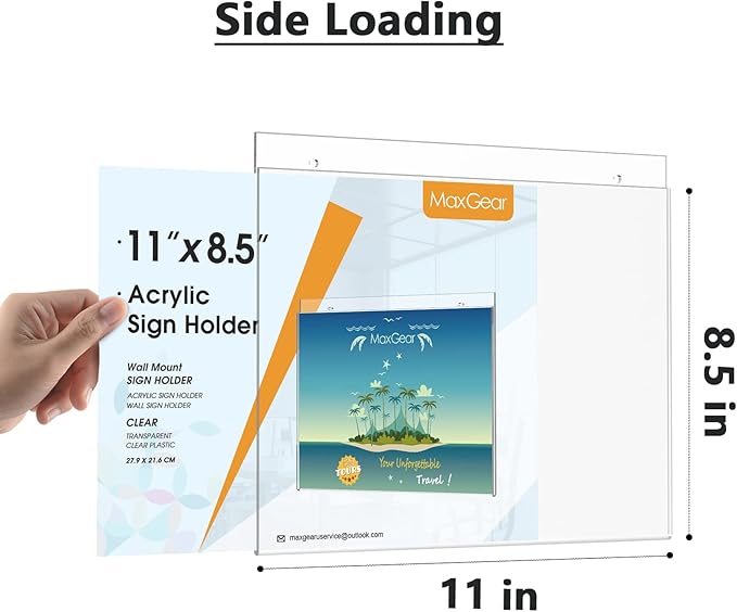 MaxGear Wall Mount Sign Holder 8.5x11, Acrylic Wall Sign Holder with Mounting Screws, Plastic Clear Plastic Picture Frames for Home, Office, Store, Restaurant, Landscape (24 Pack)