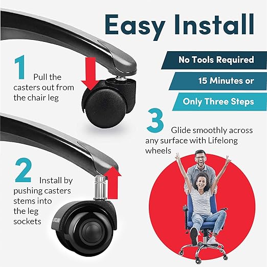 - THE LAST OFFICE CHAIR WHEELS YOU'LL NEED – Not all caster wheels are created equal. Our 2 inch heavy-duty chair wheels are made from industrial-grade steel, precision ball bearings, and durable polyurethane chair casters, which are built to last. They can withstand the rigors of daily use, ensuring long-lasting performance even with frequent movement.