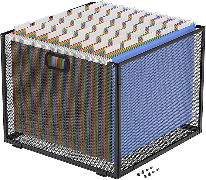 Oterri Hanging File Organizer, Metal File Organizer, Portable Desktop File Organizer for Letter Size Folder, Mesh Hanging File Crate for Office,Folders Not Included(Cool Black-Large,1 Pack)