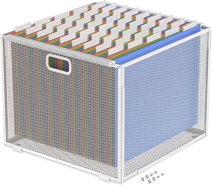 Oterri Hanging File Organizer, Metal File Organizer, Portable Desktop File Organizer for Letter Size Folder, Mesh Hanging File Crate for Office,Folders Not Included(Pure White-Large,1 Pack)