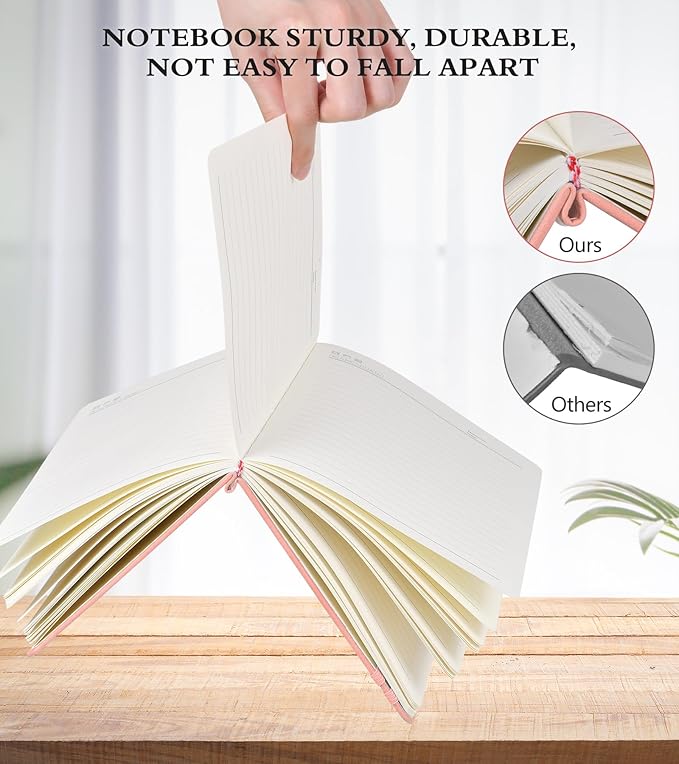 - 【180° LAY FLAT DESIGN & PREMIUM PAPER】: Lay the notebook completely flat for easy writing in any setting—whether at your desk, in a café, or on the go. The 200 pages of 100 GSM lined paper (7mm spacing) offer a smooth writing experience, ideal for journals, work notes, school assignments, or Bible study notes, with minimal ink bleeding or feathering.
