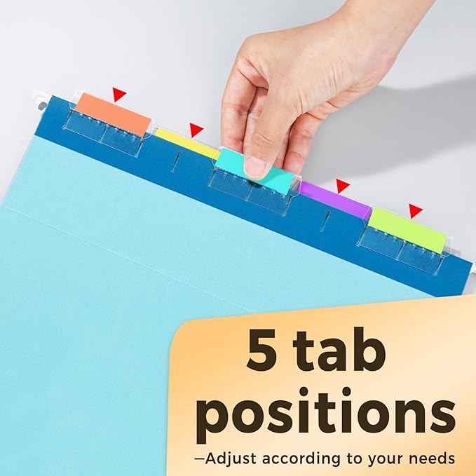 - With 1/5-cut Tabs: Include 25 pack 1/5-cut adjustable tabs and two sheets of blank label inserts. You can customize your file names on blank labels to help you mark and categorize your documents efficiently.