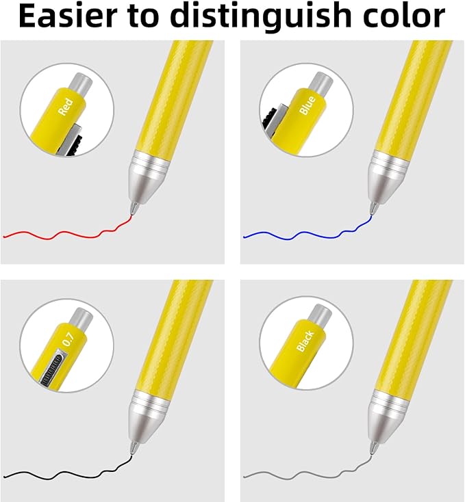 4-in-1 Four-Color Multifunctional Pen, Black/Red/Blue Ballpoint Pen and 0.7mm Mechanical Pencil, Metal Case Pen, Great Gift for Friends, Loved Ones (Yellow)