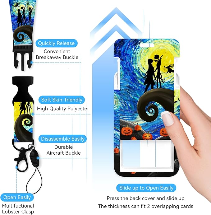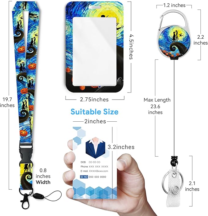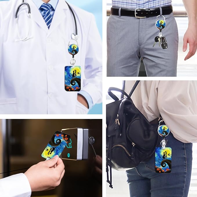 Badge Holder with Retractable Reel and Breakaway Lanyard,Christmas Nightmare Badge Clips Retractable Heavy Duty Badge Reel,Halloween Keychain,ID Holder with Breakaway Lanyard for School