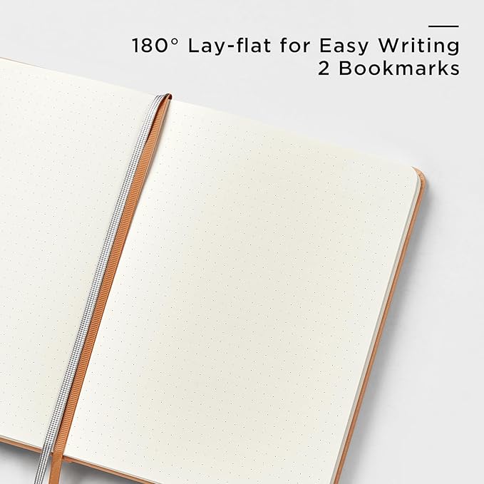 - 180° LAY-FLAT DESIGN: The lay-flat design allows for easy writing and ensures that you can utilize every page efficiently. Journaling, note-taking and planning has never been easier! 2 Bookmarks to help you find important content faster