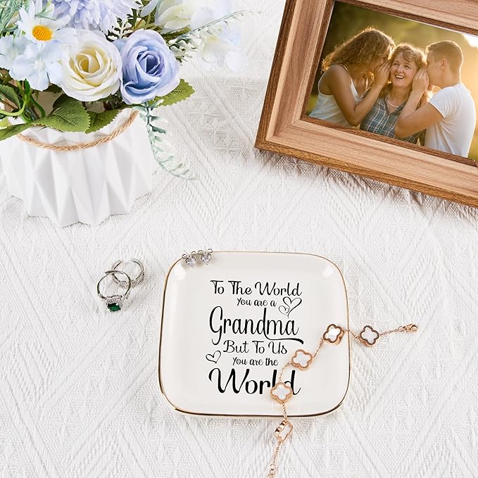 - Gifts for Grandma: "To the world, you are a grandma, but to us, you are the world”, with heartwarming words, this grandma-themed trinket dish makes a special gift for grandmother. Perfect gifts for any occasion, such as grandma's birthday, retirement, mothers day, valentines day, Christmas, Thanksgiving, etc.