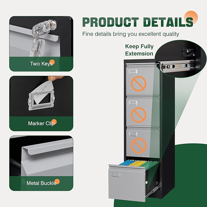 - 〖Document Storage Security〗One key to lock all drawers,each drawer can hang A4/F4/Letter/Legal and other file types;Each drawer can hang at least 150 files,drawer dimensions: 12.86"WX16.18"DX9.44"H.