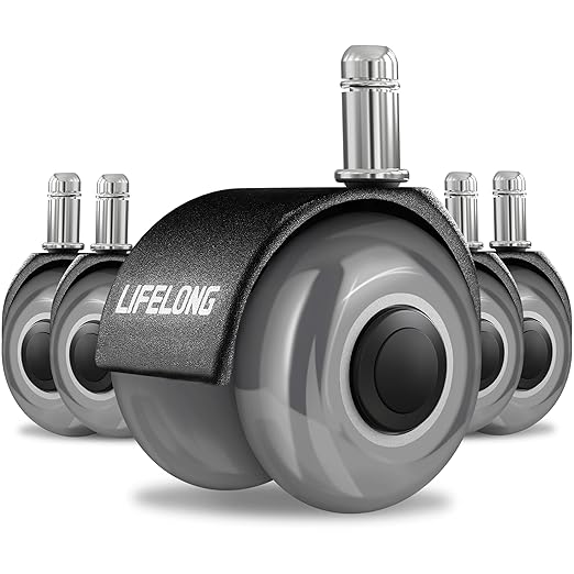 Lifelong Office Chair Wheels Replacement Rubber Desk Chair Casters for Hardwood Floors and Carpet, Set of 5, 2 Inch Heavy Duty Casters for Chairs to Replace Office Chair Mats - Fits 98%