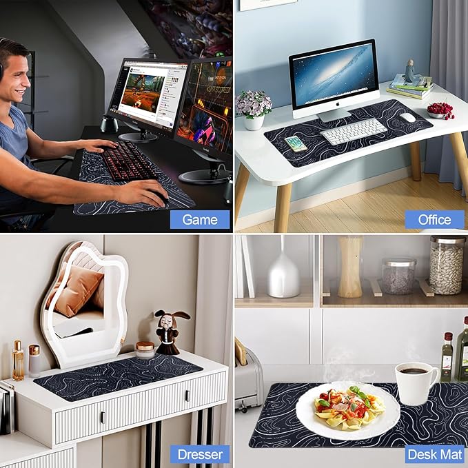 - 【Multiple Uses】: As a topographic mouse pad, it looks great, add beauty to space. suitable for work or gaming, whether at home or in the office. Served as desk mat for keyboard and mouse, with large coverage area, leaning on top is very comfortable