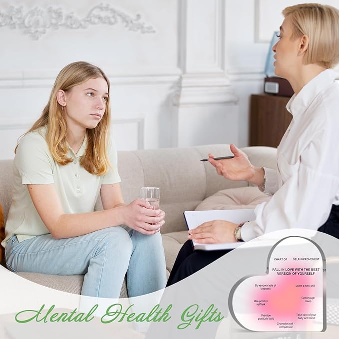 Mental Health Decor, Psychotherapy Affirmations Heart Acrylic Sign, Therapy Anxiety Decor Sign, Therapy Mental Health Decorations, Mental Health Gifts for Social Worker Classroom School Counseling