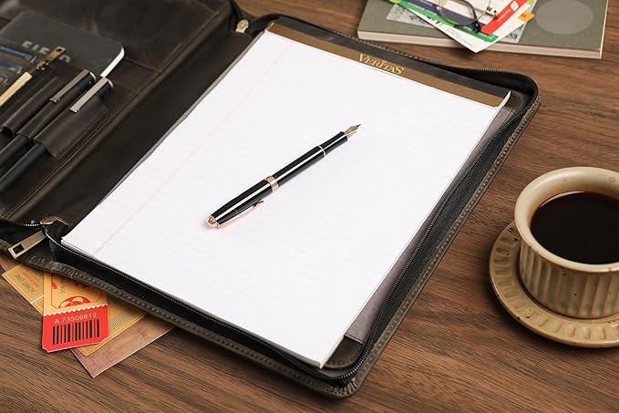 - Genuine leather combination with top quality YKK zippers. The leather has fine stitching and perfect edge sealing without harshness. The four-corner elastic straps of the ipad holder will not interfere with the use of the tablet buttons. This business padfolio will accompany your every interview, meeting and business trip.