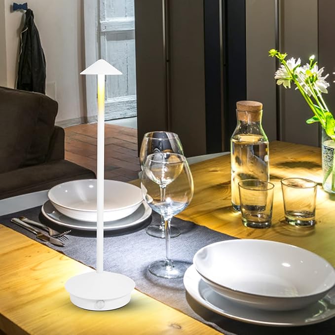 - 【Minimalist Design】- The appearance of table lamp adopts a cool triangle design, It looks very fashionable, just touch the switch at the bottom of the table lamp can be lit, warm lighting is very suitable for decorating your terrace, room, dinning table, bar, etc. Can be given as a gift to your family and friends.
