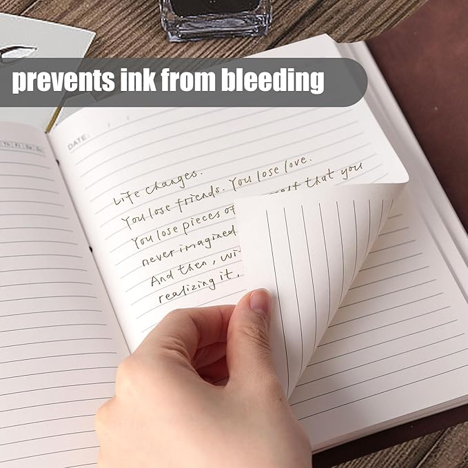 - Thick Paper - Our leather journal features high-quality thick paper that ensures smooth writing and prevents ink from bleeding. Each leather bound journal contains 130 sheets for ample writing space.