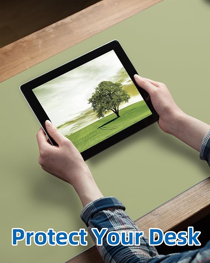 Leather Desk Pad Protector,Mouse Pad,Office Desk Mat, Non-Slip PU Leather Desk Blotter,Large Desk mat,Waterproof Keyboard mat for Office/Home/Decor (Olive Green,48" x 17")