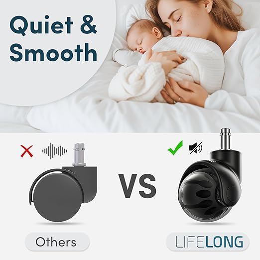 - SMOOTH GLIDING IS AS QUIET AS A MOUSE – A squeaky, rickety office chair wheel is a telltale sign that they’re cheap and poorly made. You’ll slide and glide around in total silence with our swivel casters.