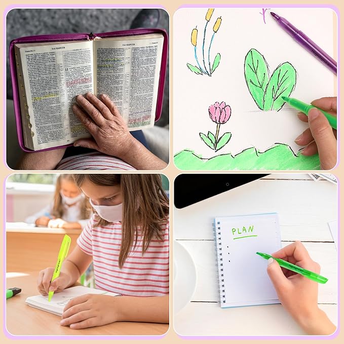 - Fluorescent Colors:These highlighters come in bright assorted colors, and the transparent shell allows you to see its beautiful colors at a glance, marking important knowledge points more prominently when you're reading and studying.