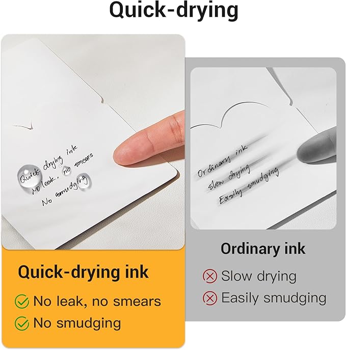 - Quick-Dry Ink: Say goodbye to smudges with our fast-drying gel ink, allowing for clean, sharp writing without the worry of bleed-through. Perfect for both right and left-handed writers, these pens ensure your journaling is always neat and presentable.