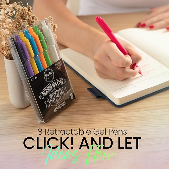 Loddie Doddie Gel Pens - 8-Pack 0.7 mm Medium Point Retractable, No Bleed, Smooth Writing Neon Ink for Journaling & Note Taking