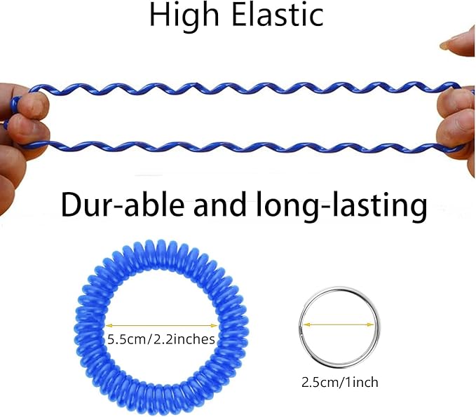- Pack of 36 plastic coil stretch wristband keychains with white colors, fit for personal items distinction, bunches of keys, luggage tags, memory sticks, pet name tags, etc.