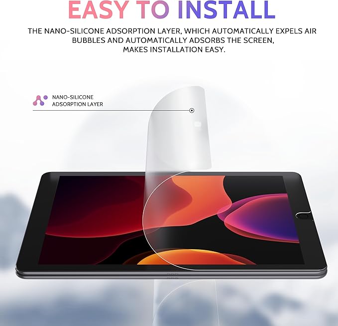 - 【Easy to Install】The Peslv iPad 10.2 screen protector uses a nano-silica gel adsorption layer, which can automatically discharge air bubbles and automatically absorb the screen, which will make our installation very simple and convenient, and there will be no more troubles with air bubbles. The iPad like-paper film has high-quality oleophobic properties and can effectively prevent fingerprints.