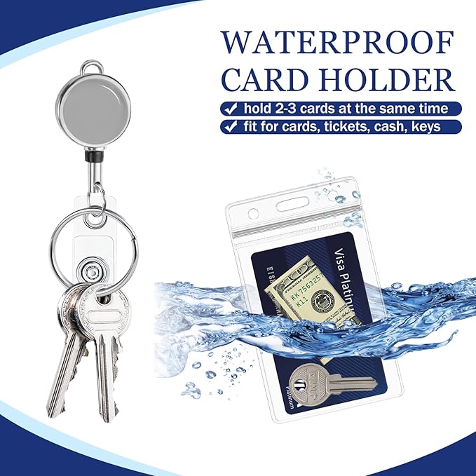 - Multifunctional ID Holders: This thickened waterproof ID card holder has an internal size of 2.5 "x 3.5" and is designed to accommodate cruise and credit card-sized cards. It is also suitable for storing tickets, cash, and keys, with the capacity to hold 2-3 cards at once. The PVC card holder features a top resealable zipper, providing dustproof and waterproof protection to ensure the safety of internal ID badge, ID card and cruise cards