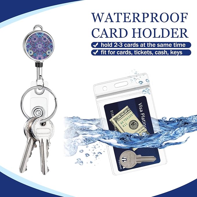 - Novelty Design: This necklace ID badge lanyard and retractable badge reel features a striking design inspired by the unique patterns of floral. The delicate and vibrant aesthetic of the floral pattern adds a touch of natural beauty and elegance to the lanyard, making it a stylish and eye-catching accessory for carrying ID badges. Package Included: ID lanyard retractable reel x2, thickened waterproof ID holders x2