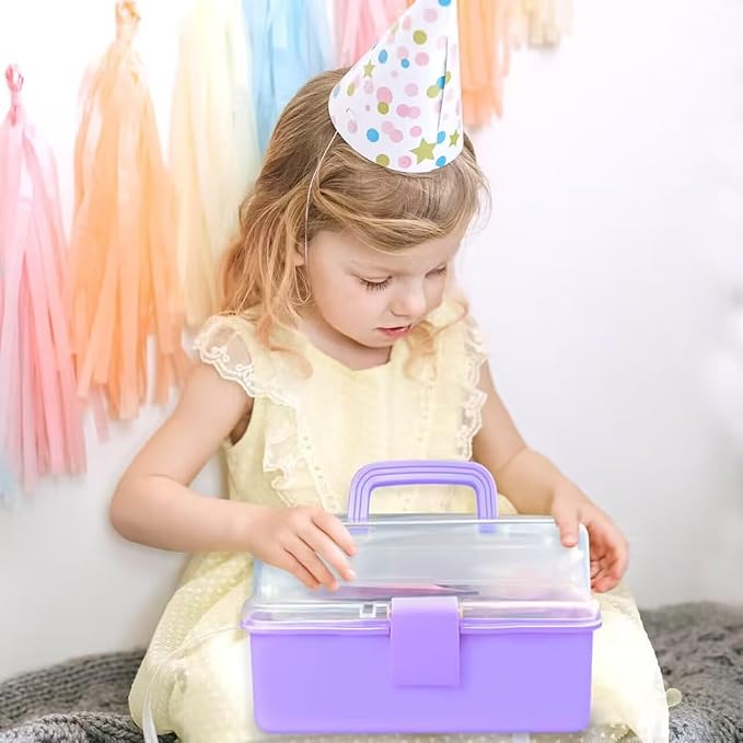 - 【Portable 3-Story Craft Box】The colorful storage box measures 10.2x5.7x5.1 inches. All art supplies are packed in a convenient and reusable 3-tier organizer. Comes with carrying handles for easy storage and transportation.