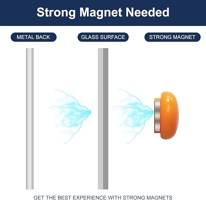 - MAGNETIC GLASS WHITEBOARD - Our glass calendar monthly planner comes with a multifunctional steel-backed magnetic glass and 4 high-power glass board magnets. Making this glass whiteboard perfect for meetings and presentations. (NOTE: The magnetism will not be strong due to the thickness of the glass, standard magnets do not work. The eraser is not magnetic.)
