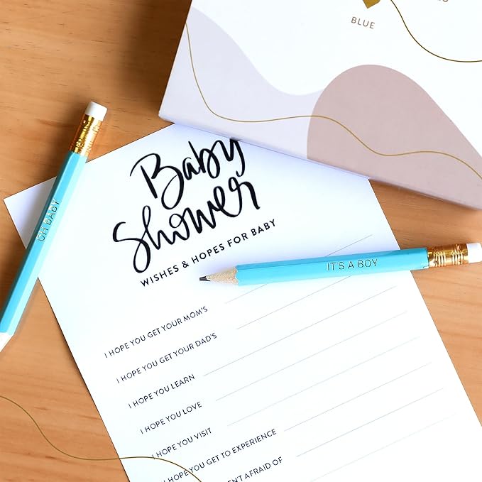 - BEAUTIFUL DESIGN: Show your guests that you have an eye for detail and quality. Our blue wooden pencils have a gold ferrule, a white eraser, and three gold foil designs: "IT'S A BOY", "OH BABY", "♥". These are ideal for any event centered around babies and love.