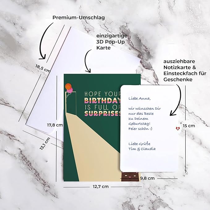 - Dimensions And What’s Included: In the package is a 5" x 7" pop-up card, a blank 4" x 5.8" message card to write your own personal message, and a premium, heavy-stock white envelope.