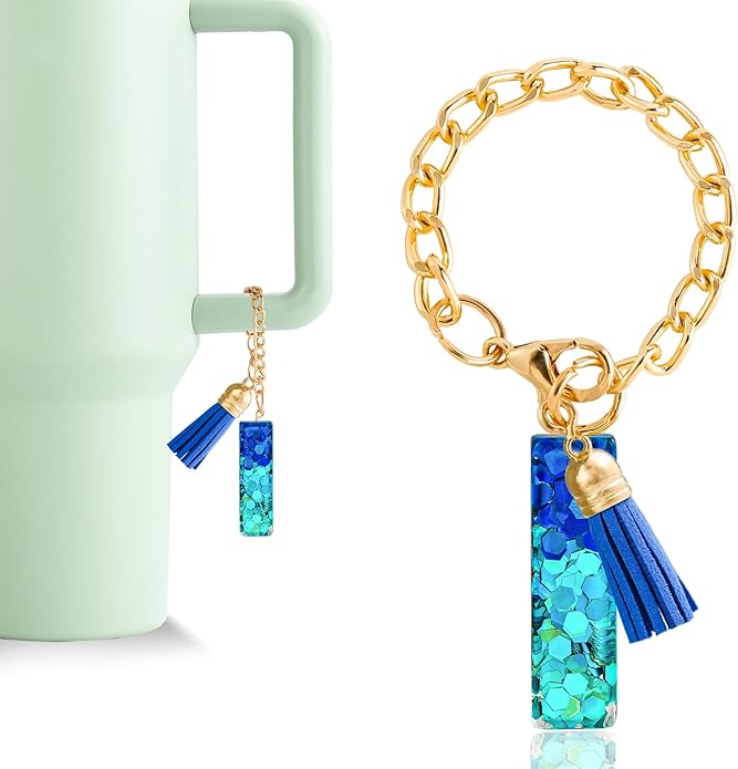 - Quality Material: This handle charm is made of epoxy resin material and comes with a blue cute tassel, shining and attractive. Easy to attach to the handle with a jewelry clasp and adjusts perfectly to every size handle