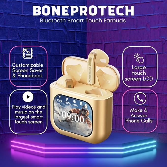 Premier Bluetooth Smart Touch Headset, Customizable Screen Saver, MP3 Player, Control Social Media, Calls, and Messeging Display. Advanced V5.3 Technologies (Red)