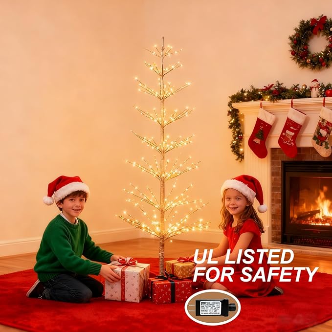 - Elegant Design: 6FT 325L lighted Starlite tree with warm white twinke LED lights. Artistic looking, especially how the branches are laid out, warm white lighting and beautiful glow, which you could use year-round
