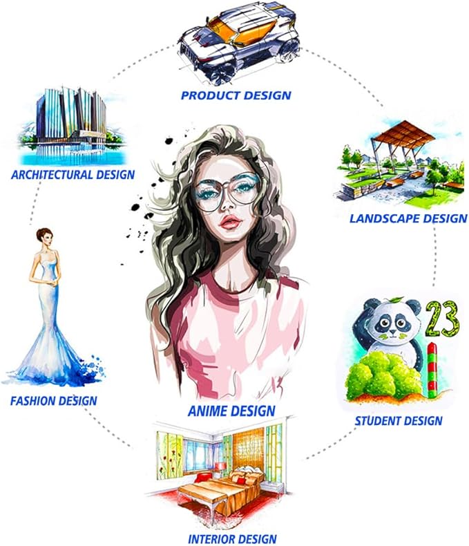- 【MULTIPLE SCENES】Alcohol markers are widely used and have a very good reputation and effect in children's paintings, artist sketches, or illustrations, clothing design, industrial renderings, cartoons, books and letters, POP posters, animations, coloring, etc. Therefore, in the field of painting, its professionalism and applicability are deeply loved by people all over the world.