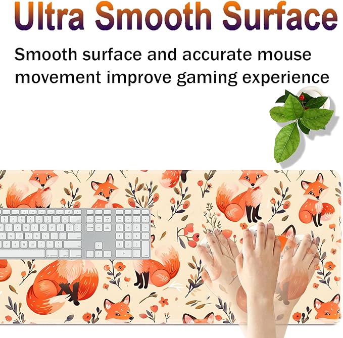 Large XXL Gaming Desk Mat 31.5"x 11.8", Ergonomic Keyboard Wrist Rest & Mouse Pad Wrist Rest + Coaster Set, Non-Slip Base, Memory Foam, Office and Home, Little Fox