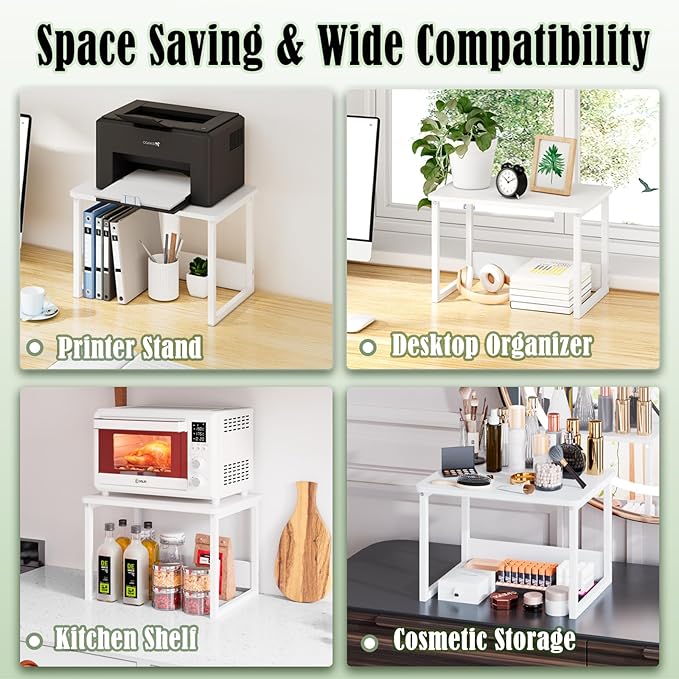 - 【Safe & Convenient】We design all corners to be rounded, in order to fully protect your safety during use. Anti-slip pads ensure printer riser more stable and avoid sliding, also can protect desktop from scratches.