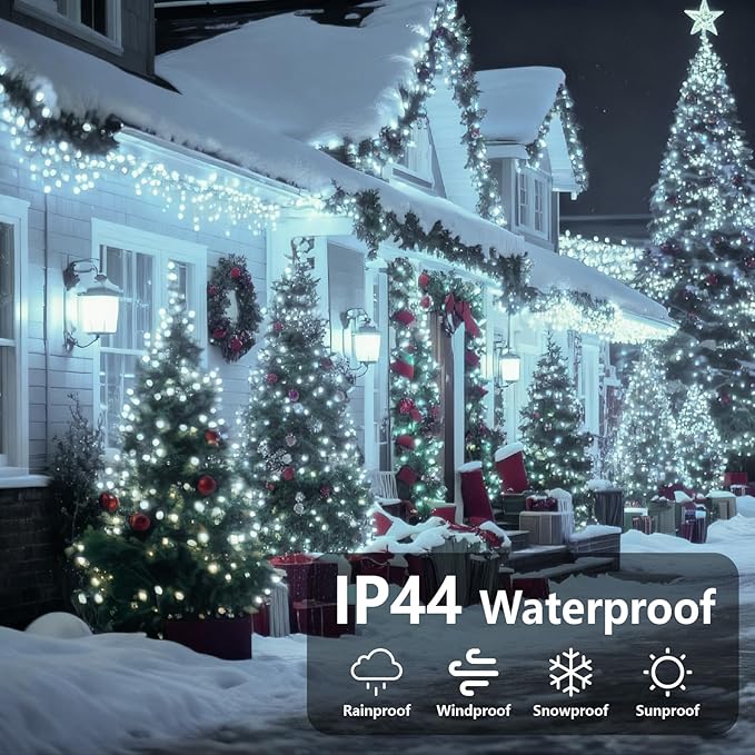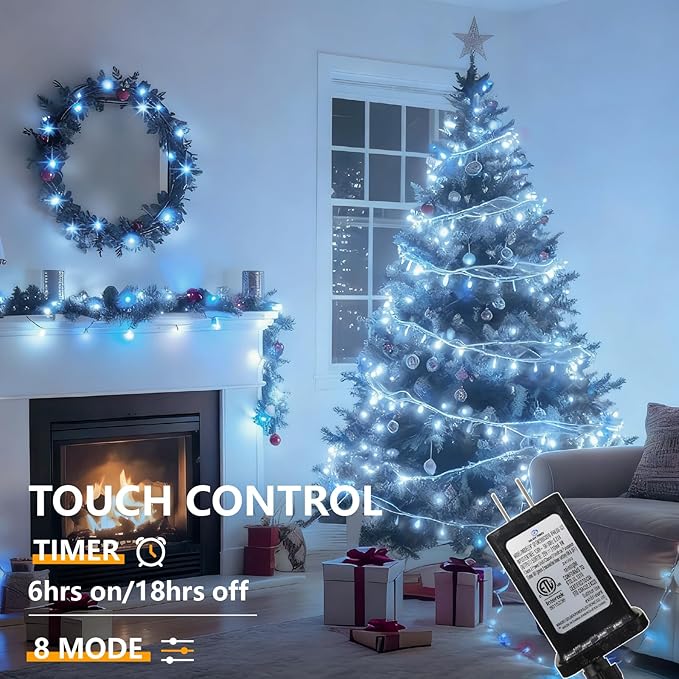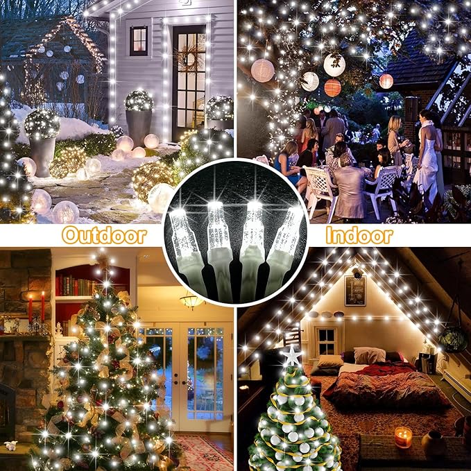 - 【8 Light Modes Christmas Lights Decorations】Our Christmas light string has 8 modes for you to choose from (1. Combination, 2. In waves, 3. Sequential, 4. Slo-glo, 5. Chasing/flash, 6. Slow fade, 7. Twinkle/flash, 8. Steady on) Suitable for various occasions to show different Christmas holiday atmosphere.