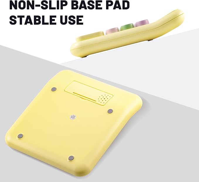 - [CUTE CALCULATOR] This desk-yellow mechanical calculator has a large 12-digit display, large buttons, and dual power supplies (solar and battery), making your work easy and enjoyable.