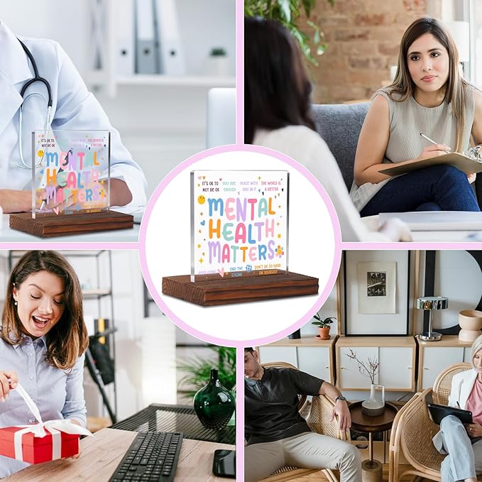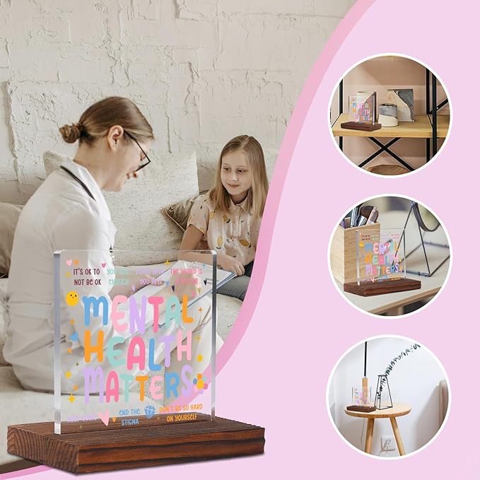 Mental Health Matters School Psychologist Gift Clear Desk Decor Signs, Graduation Gift for Psychiatrist Acrylic Plaque, Appreciation Thank You Gifts Anxiety Therapist Office Decor Signs TZD62