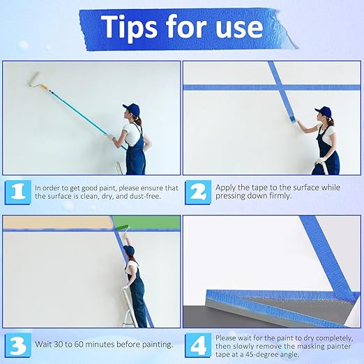 - Blue Tape Painters Multi Pack: the blue paint masking tape are made of quality material, resistance to UV, direct heat, cold, and wet, convenient to use in any weather condition, ideal for interior and exterior use, the wall painting tape are also reliable, safe and long lasting, sturdy, not easy to wear, break or fading, serving you as a nice building or craft tool for a long time, these trim edge finishing tape will be the ideal masking tape for painting